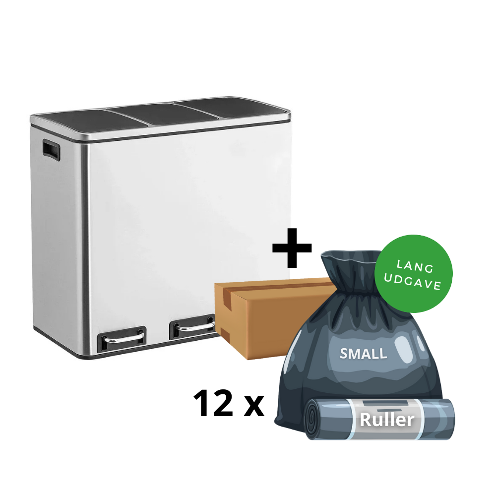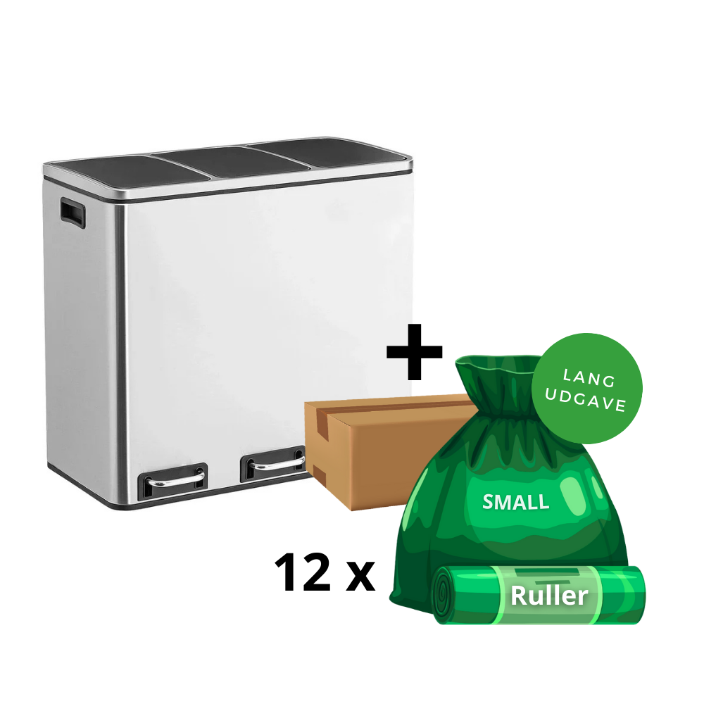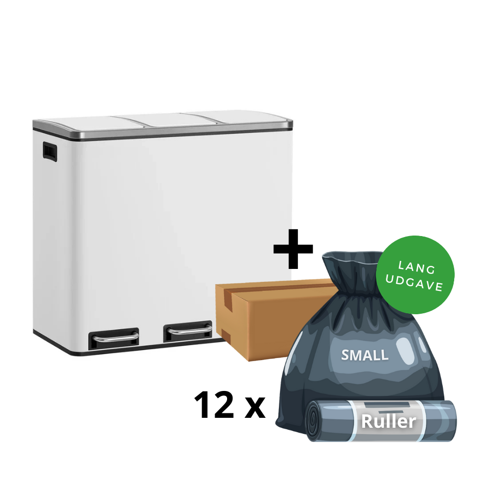 Clara-Clean er en elegant og rummelig 3-rums affaldsspand, der kombinerer stilrent design med praktisk funktionalitet. Her får du en komplet løsning med hele 12 ruller (336 poser) – nok til et helt år.